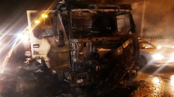 آتش گرفتن کامیون در آزادراه قزوین-زنجان + تصاویر