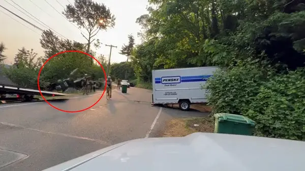 فیلم زمین خوردن هولناک دوچرخه سواران در برخورد با سیم بوکسل وسط خیابان / شوکه می شوید