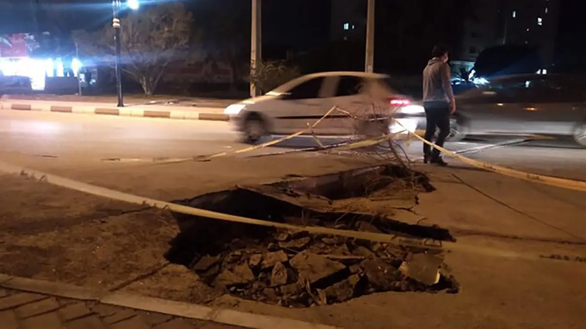 فرونشست یک خیابان در اصفهان / اتوبوس گیر کرد + عکس