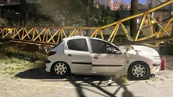رکنا : وقوع وقوع تندباد و سبب سقوط جرثقیل بر روی پژو ۲۰۶ شد.