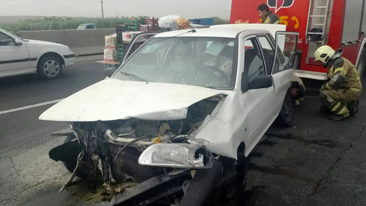 3 عکس دلخراش از تصادف مرگبار پراید در جاده تهران به قم / یک زن و مرد در دم جان باختند