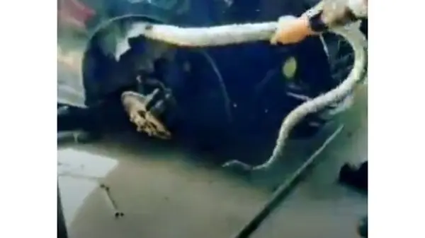 رکنا: علت خرابی خودرو این مرد گیر کردن یک مار پیتون در خودرو بود.