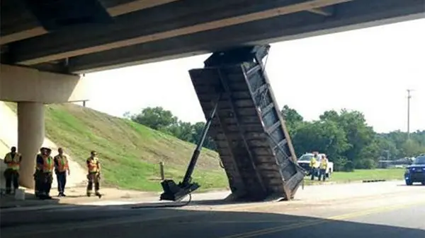 ببینید / لحظه برخورد کمپرسی کامیون به پل هوایی + فیلم وحشتناک