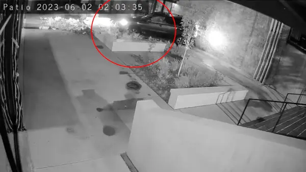 فیلم رانندگی با خودرو سواری روی پله های خانه مسکونی/ داخل باغچه هم رفت!