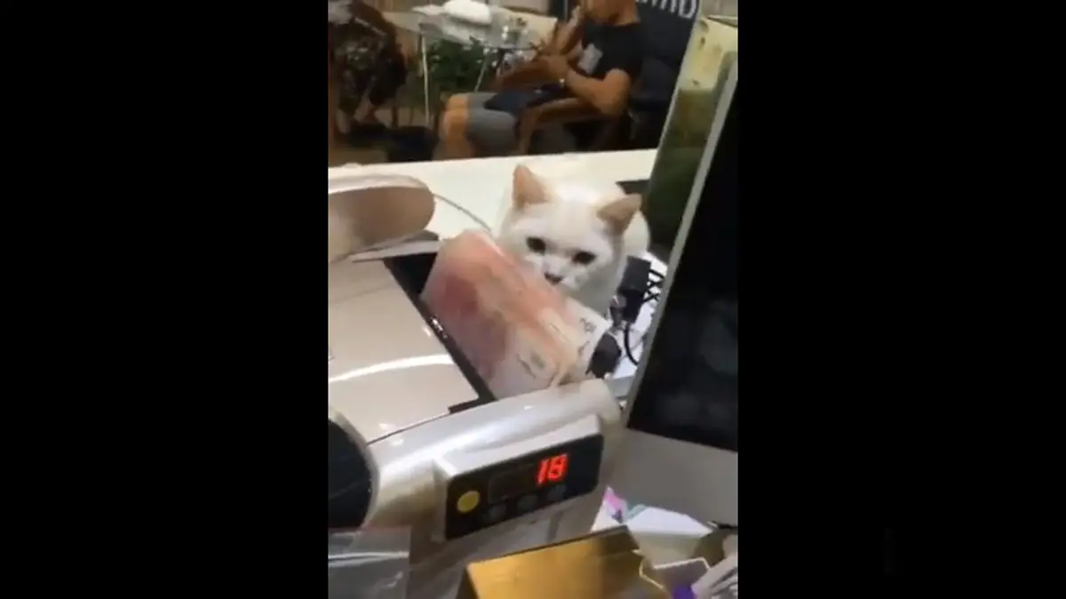 فیلم سرقت عجیب یک گربه از دستگاه شمارش پول! / آموزش دیده است