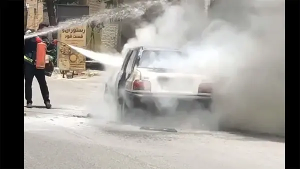 فیلم آتش گرفتن پراید وسط خیابان در شهرکرد