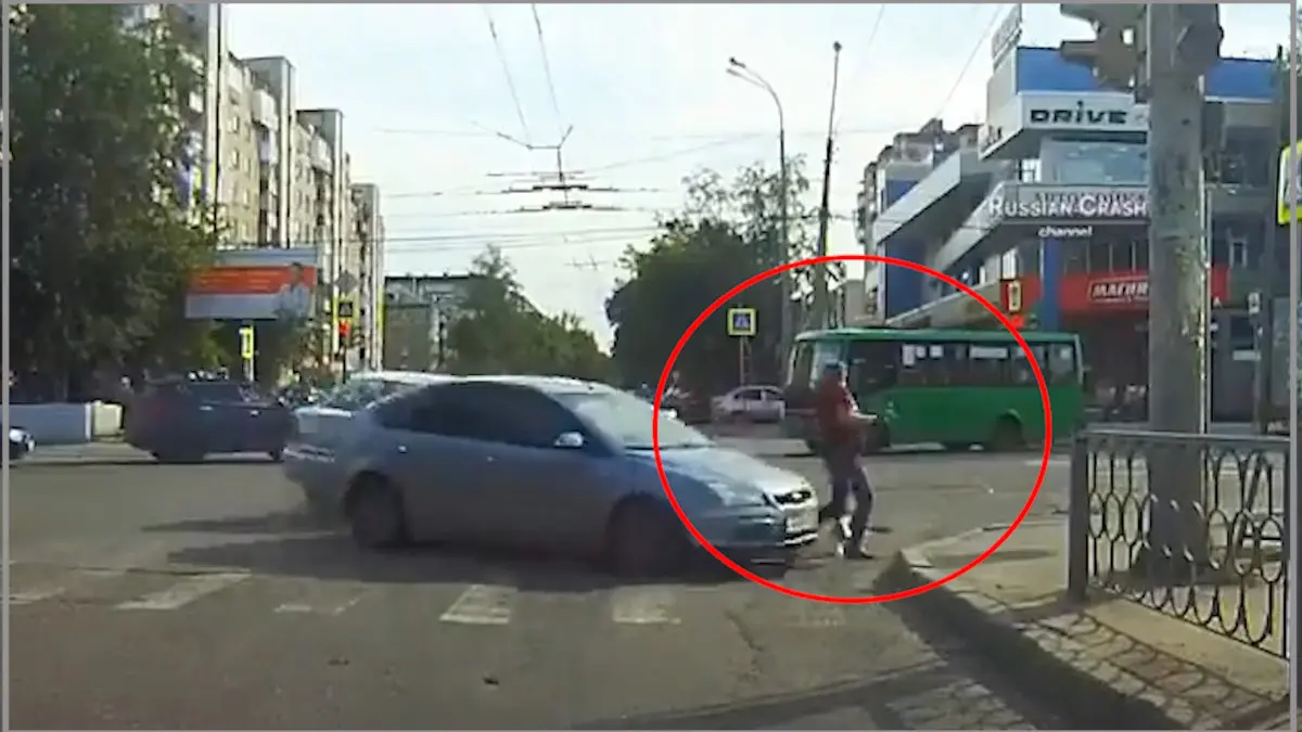 رکنا : دوربین های مدار بسته خوش شانسی عابر پیاده در تصادف دو خودرو و زنده ماندن عجیب این مرد نوجوان را ثبت کرد .
