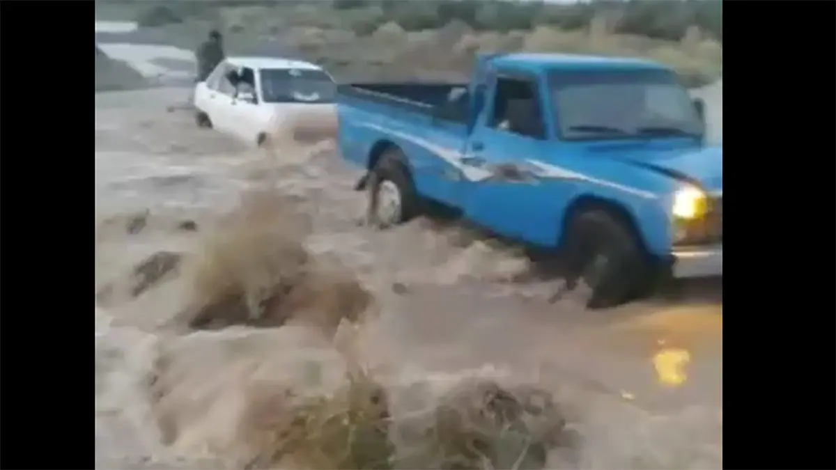 حوادث رکنا: سیلاب سیستان و بلوچستان باعث بکسل کردن دو ماشین شد.