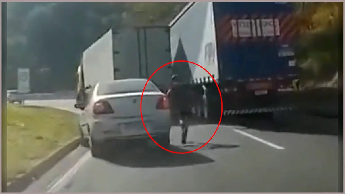 فیلم عجیب از زنده ماندن مرد دوچرخه سوار پس از تصادف با 2 کامیون / ببینید