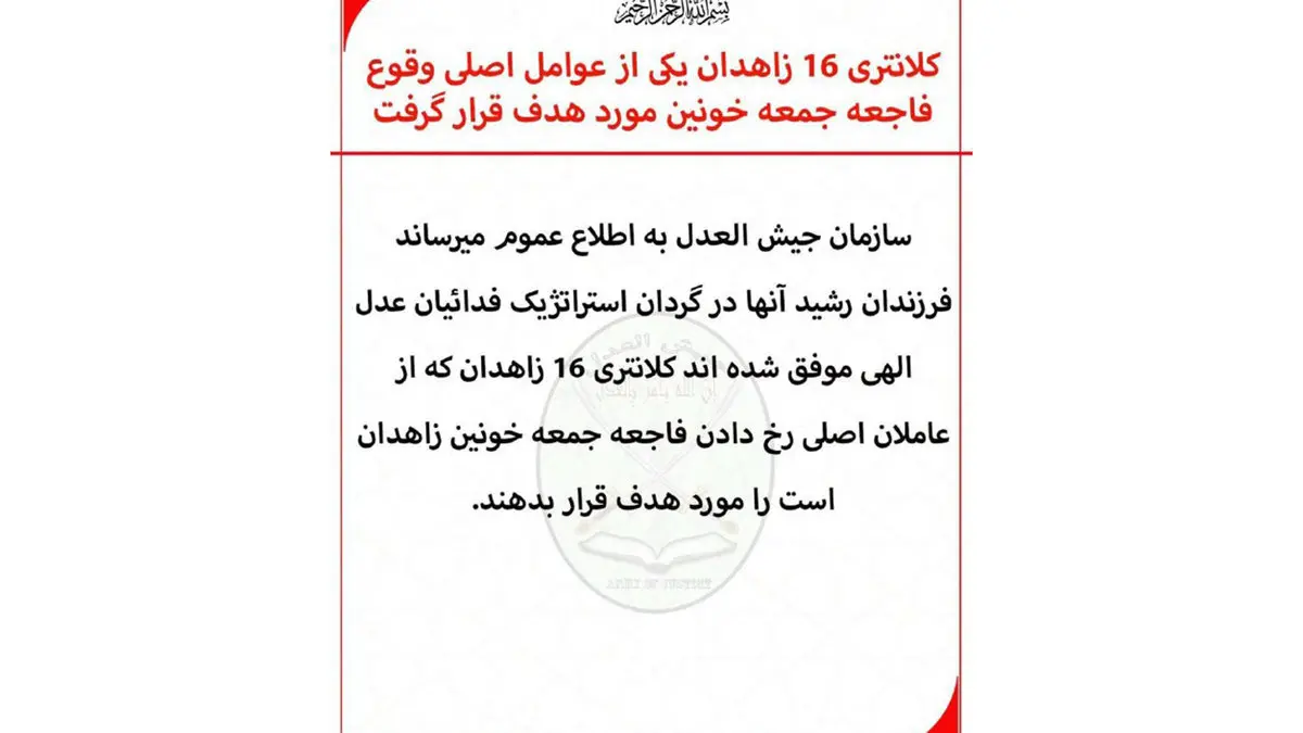 جیش الظلم مسئولیت حمله تروریستی به کلانتری 16 زاهدان را برعهده گرفت