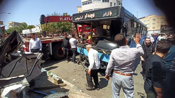 اتوبوس شرکت واحد تبریز 3 خودرو را در هم کوبید / پراید له شد + فیلم و عکس های حادثه