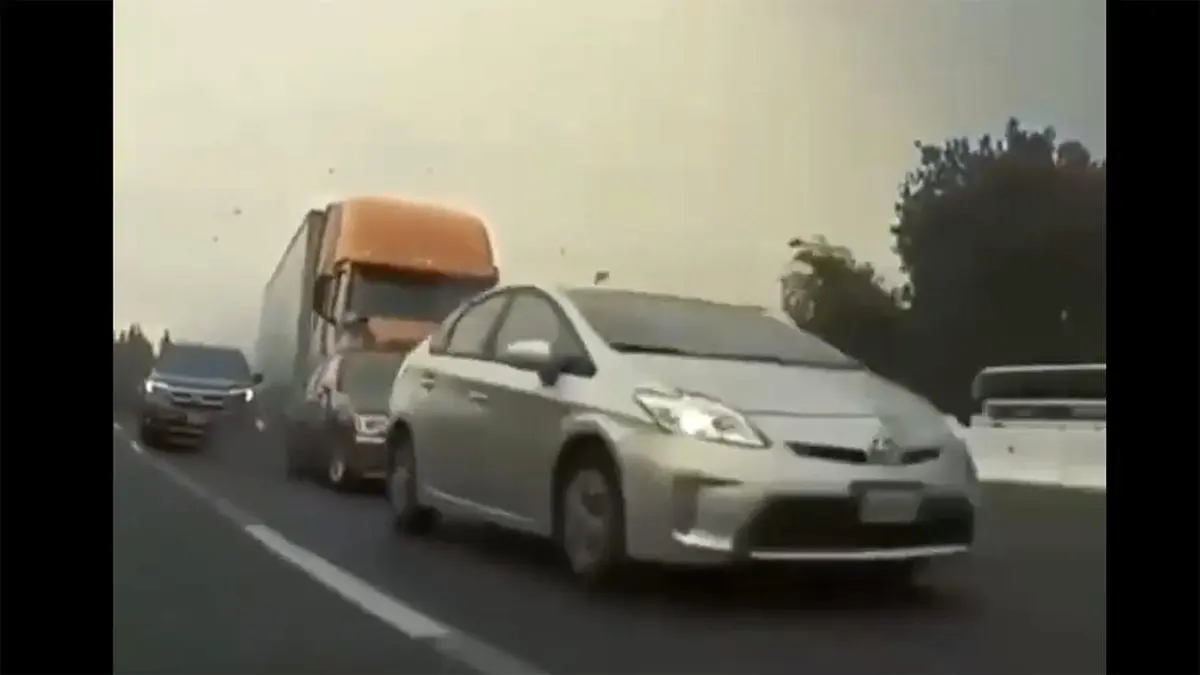 ببینید / لحظه تکاندهنده ترمز بریدن تریلی وسط اتوبان / له کردن دهها خودروی سواری! + فیلم