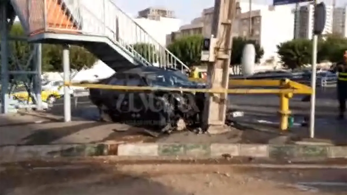 ببینید / له شدن پژو ۴۰۵ پس از تصادف وحشتناک با تیر چراغ برق + فیلم