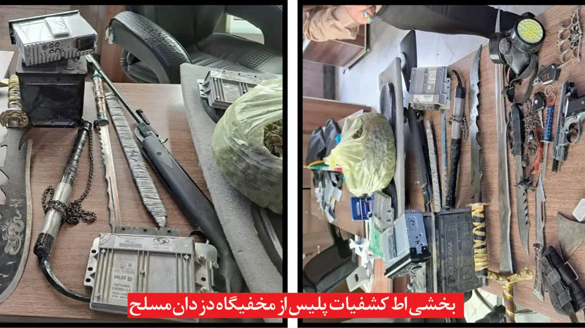 فرمانده انتظامی مشهد اضافه  کرد: در بازرسی از مخفیگاه وی، یک قبضه کلت جنگی به همراه مقادیری مهمات و انواع سلاح های سرد مانند شمشیر و قمه، ماسک ضد گاز و قطعات سرقتی خودرو به همراه مقداری مواد مخدر کشف شد.
