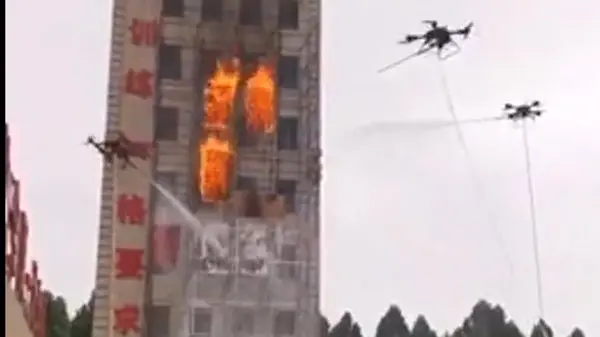 فیلم خاموش کردن آتش به کمک پهپاد / طبقه 25 ساختمان آتش گرفته بود