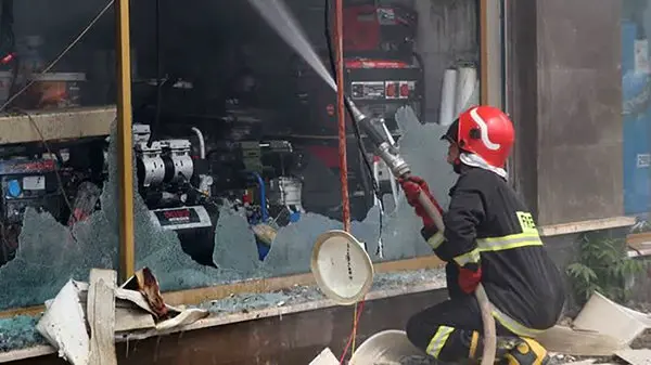 آتش سوزی یک ساختمان در خیابان پیروزی