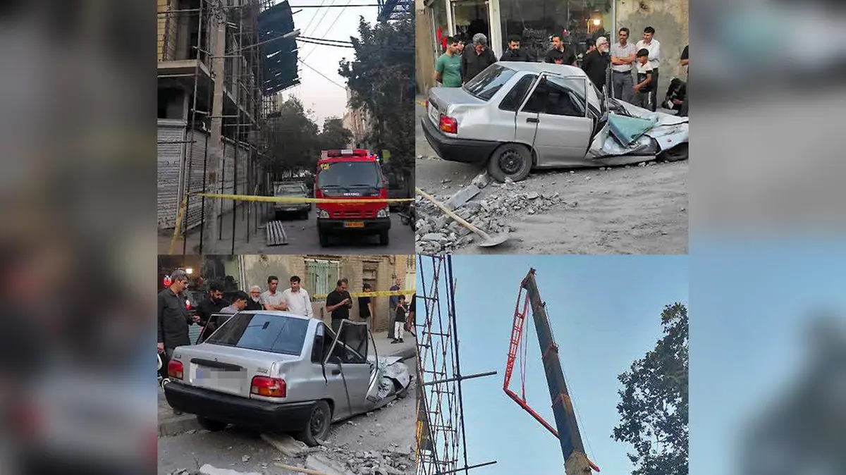 عکس وحشتناک از سقوط تیرچه های بتنی روی جرثقیل روی پراید / خودروی ایرانی پرس شد