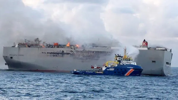 کشتی باری با 3 هزار خودروی آلمانی 4 روز است می سوزد / یک کشته و 16 مصدوم + فیلم و تصاویر