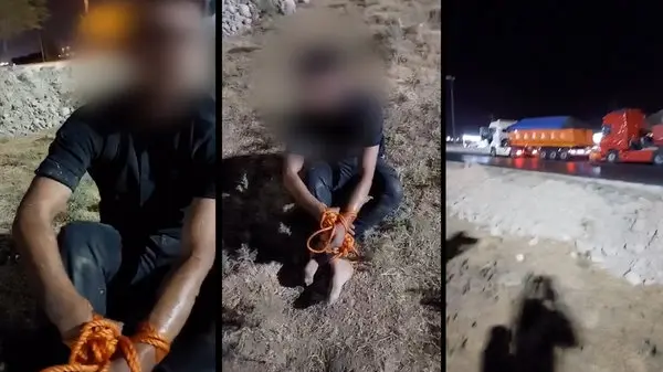 دراین فیلم مشاهده میگردد که پسر جوانی با دستان بسته توسط رانندگان کامیون دستگیر شده است. فردی که درحال فیلمبرداریست اینگونه ادعا میکند که پسرجوان درخواست موبایل برای تماس گرفتن با خانواده خود را از راننده کامیون میکند و زمانی که راننده حاضر به دادن گوشی موبایل به پسرجوان نشد باچاقو چند ضربه به راننده وارد میکند که در نهایت متهم با کمک دیگر رانندگان خودروهای سنگین دستگیر میگردد.