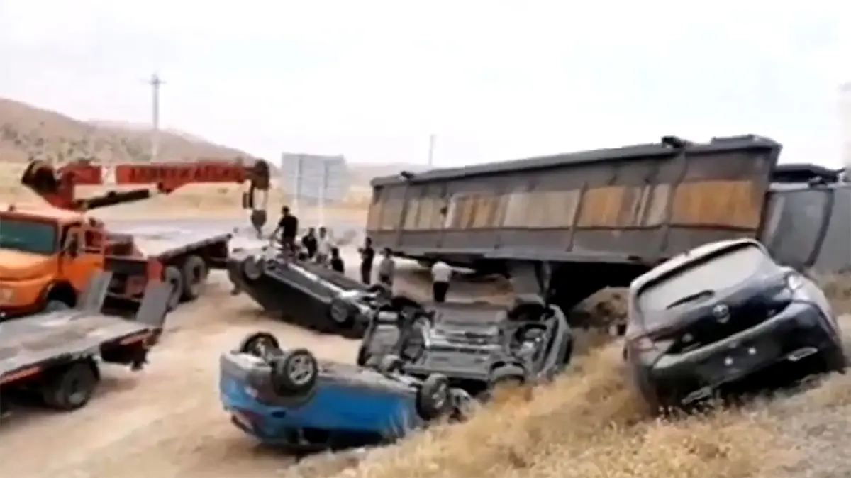 ببینید / اولین ویدیو از چپ کردن تریلی حامل خودروهای وارداتی و لوکس در اتوبان شیراز - اصفهان