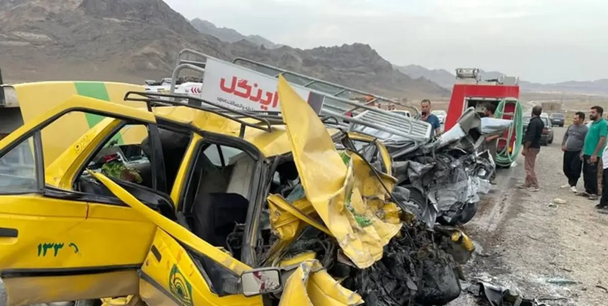 عکس تاکسی له شده / 3 کشته در تصادف جاده قدیم نطنز به اصفهان