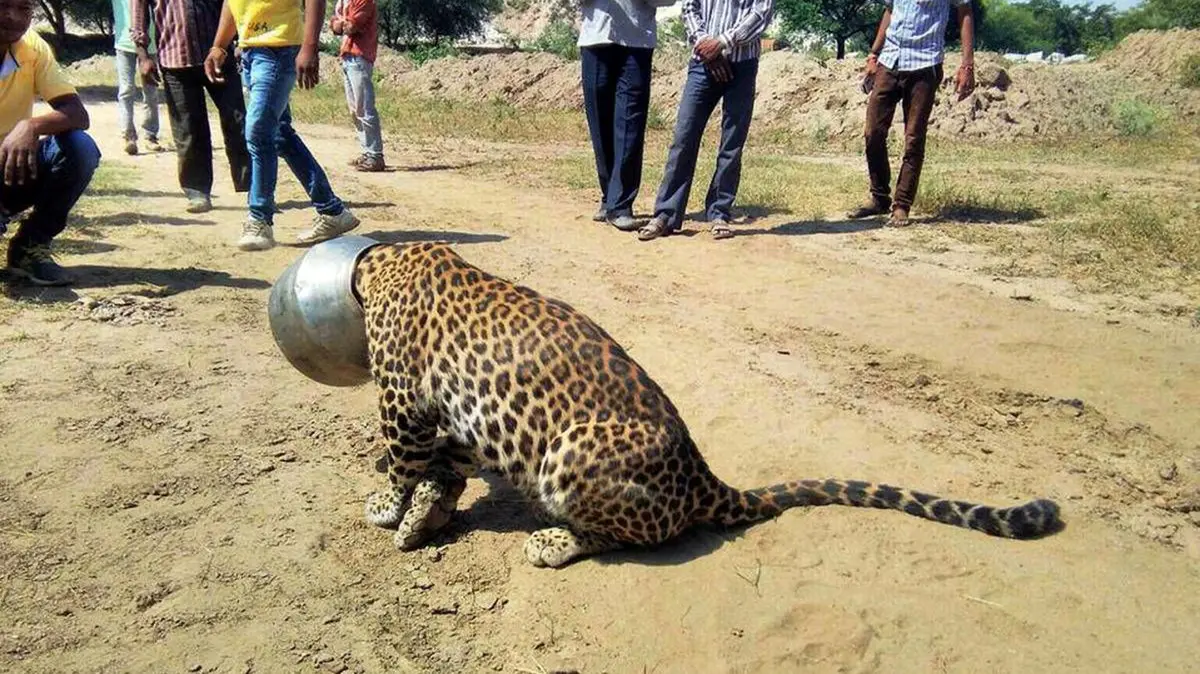 به گزارش رکنا، پلنگی در شمال هند سرش داخل ظرف فلزی گیر کرده است و مردم از ترسشان نمی‌توانند به پلنگ کمک کنند و درگیری پلنگ با ظرف فلزی ادامه دار است.