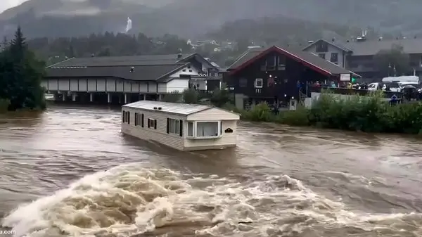 ببینید / سیل در نروژ یک خانه پیشساخته را با خود برد