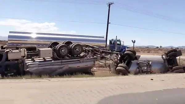 ببینید / لحظه وحشتناک چپ کردن یک کامیون حمل سوخت