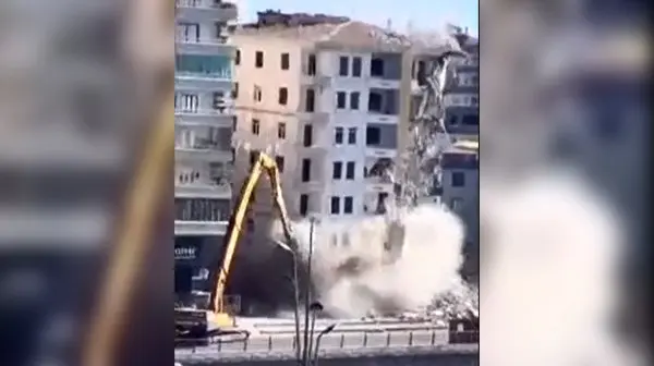 حوادث رکنا: ساختمان ۷ طبقه که در زلزله ۵/۳ ریشتر ترکیه آسیب زیادی دیده بود، پیش از شروع عملیات تخریب، ناگهان فرو ریخت.