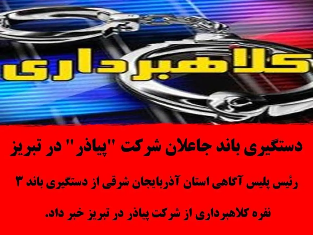 رکنا:رئیس پلیس آگاهی استان آذربایجان شرقی از دستگیری باند 3 نفره کلاهبرداری از شرکت پیاذر در تبریز خبر داد.