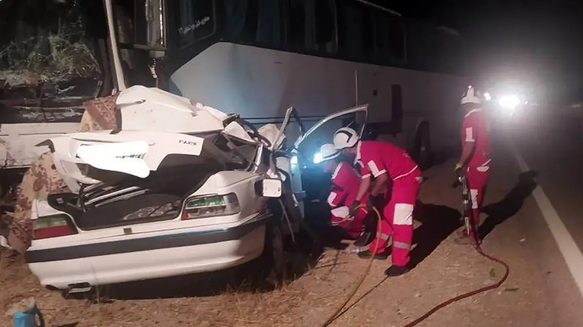 شاخ به شاخ شدن خودرو سواری و اتوبوس 13 کشته و مصدوم برجا گذاشت + عکس