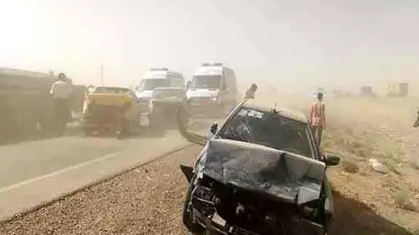 تصادف زنجیره ای هولناک 10 خودرو در بیرجند / بشکه های گازوئیل قاچاق در جاده سرازیر شد