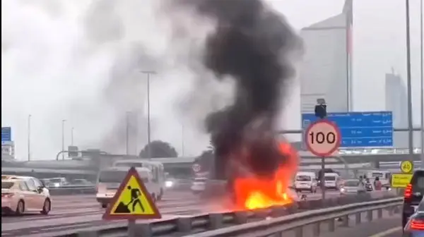 حوادث رکنا: خطای الکتریکی در یک خودرو فراری در دبی امارات باعث شد طعمه حریق گردد.