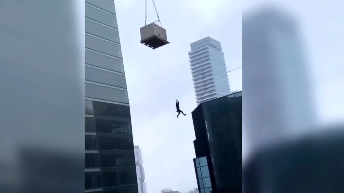 ببینید / آویزان شدن هولناک یک کارگر بدشانس از جرثقیل بلندمرتبه در کانادا