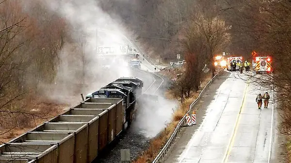حوادث رکنا: در پی انفجار یک قطار حامل اسید پرکلریک در ایالت نبراسکا یک ابر حجیم حاوی مواد سمی در آسمان منطقه تشکیل شده است.