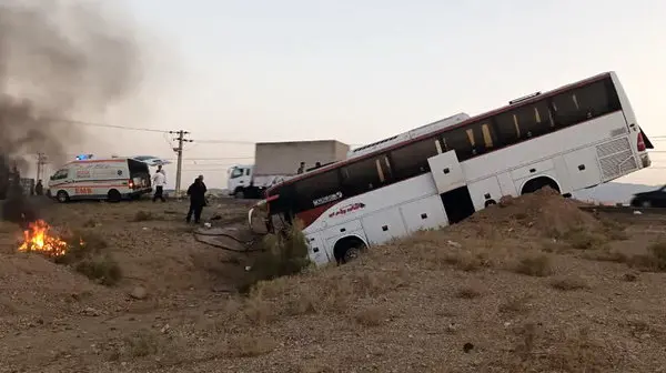انتقال مصدومان سقوط اتوبوس مشهد - تبریز به بیمارستان + علت حادثه