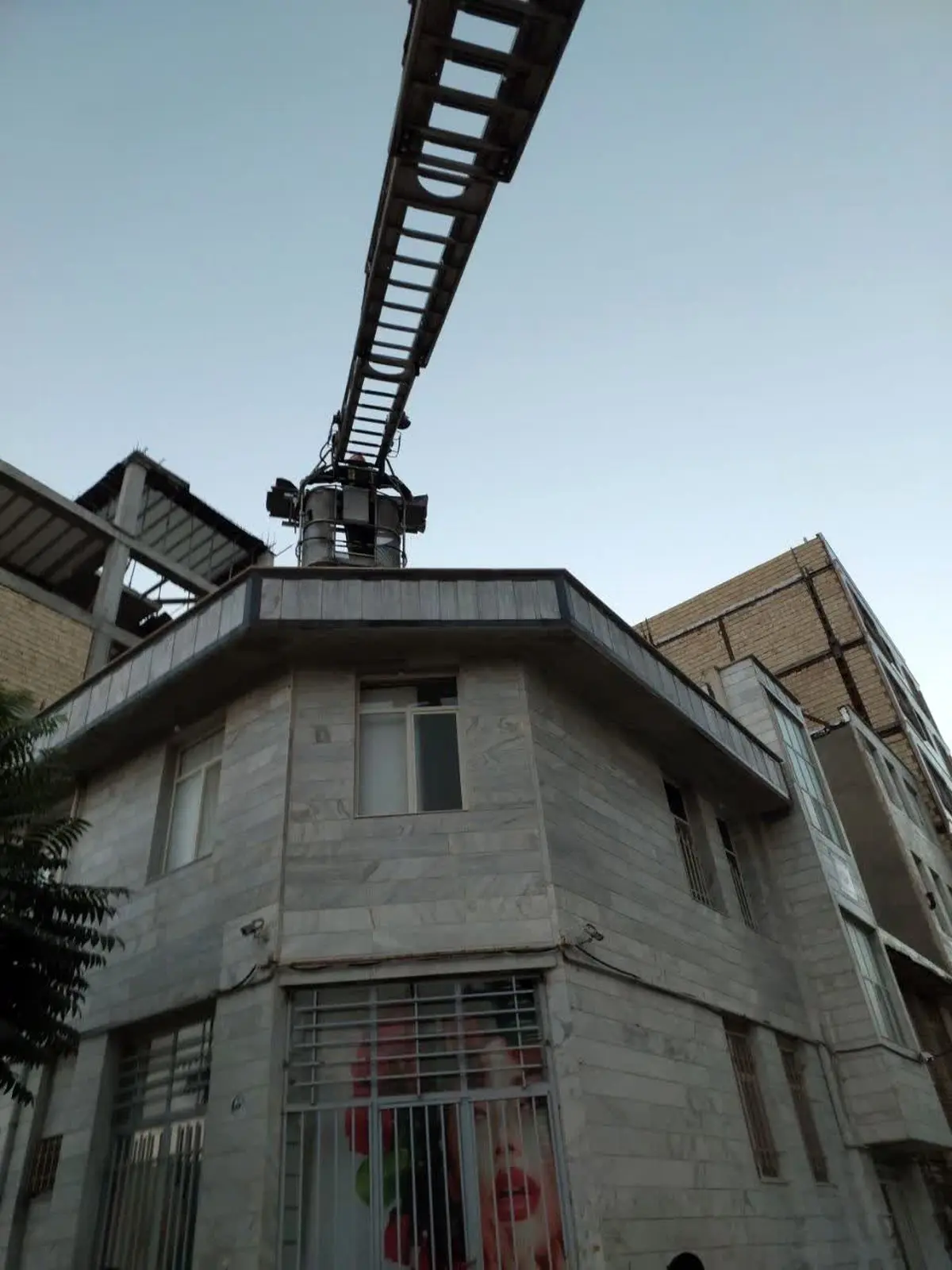 پرسنل سازمان آتش نشانی با هماهنگی پلیس و پرسنل اورژانس، جسد کارگر جوان را از طبقه دوم بوسیله نردبان ۳۲ متری به سطح خیابان منتقل و تحویل عوامل انتظامی نمودند.