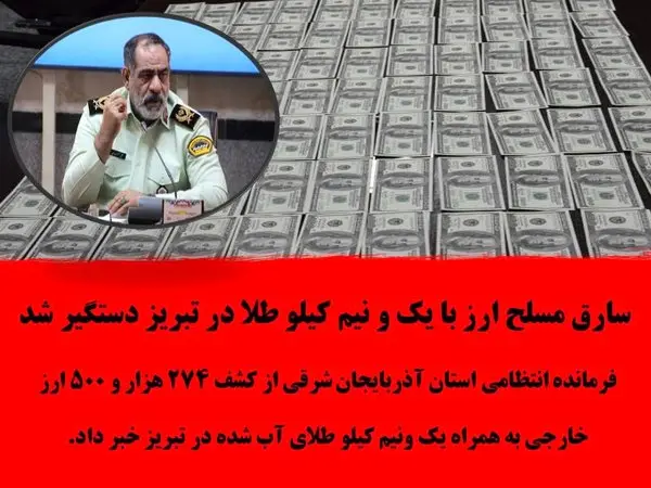 رکنا:فرمانده انتظامی استان آذربایجان شرقی از کشف 274 هزار و 500 ارز خارجی به همراه یک ونیم کیلو طلای آب شده در تبریز خبر داد.