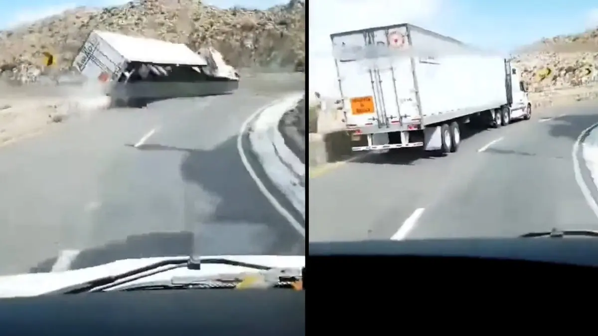 فیلم واژگونی هولناک کامیون در جاده باریک