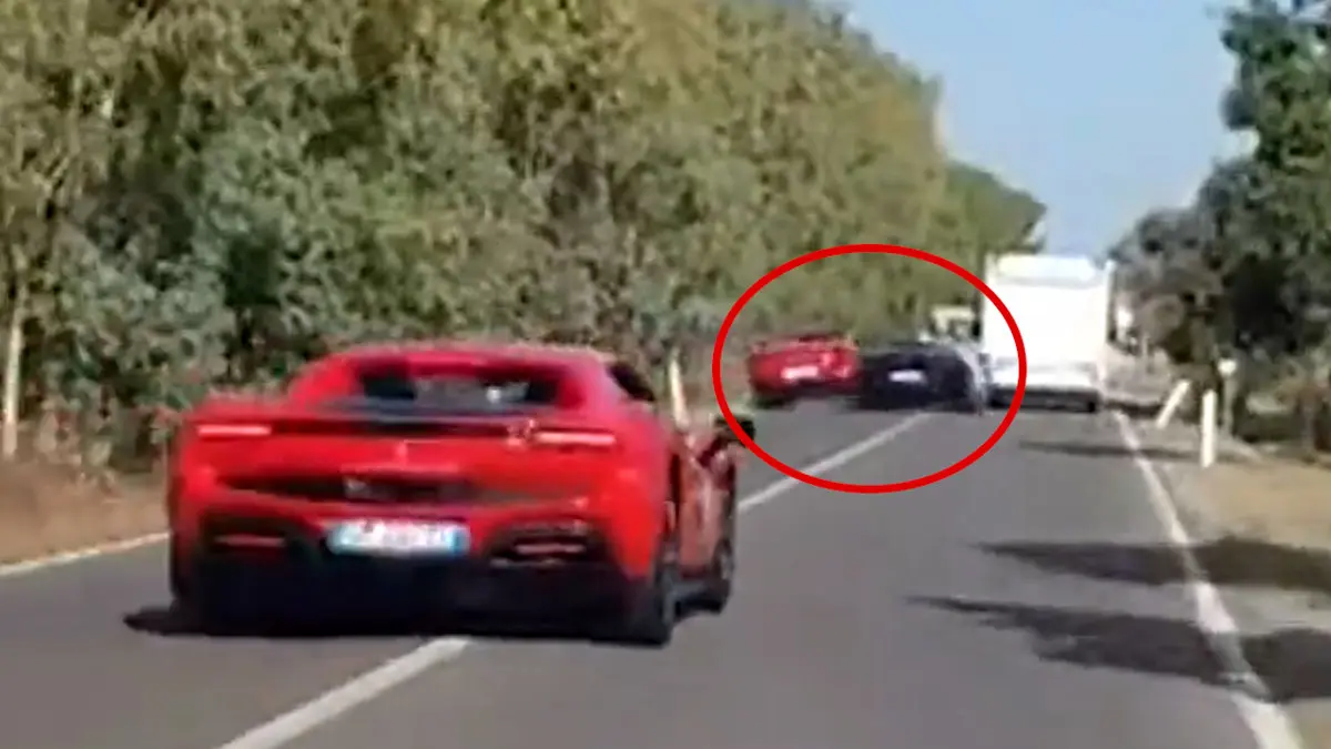 رکنا:فیلم منتشر شده توسط یک کاربر در فضای مجازی تصادف خودروهای سوپراسپرت فراری و لامبوگینی را منتشر کرده است.