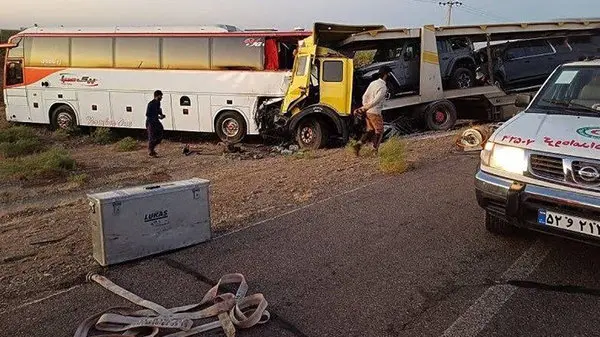 25 کشته و زخمی در تصادف زنجیره ای تریلی ، پژو 207 و اتوبوس در جاده زرین شهر