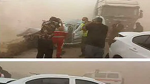 تصادف زنجیرهای در محور سرخس-مشهد به دلیل گرد و خاک ۱۲ مصدوم به جای گذاشت.