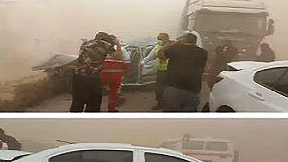 تصادف زنجیرهای وحشتناک در مشهد به خاطر گرد و خاک + عکس