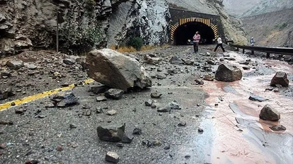 حوادث رکنا: مسافران به دلیل خطر احتمال سقوط سنگ در حاشیه جاده چالوس توقف نکنند.