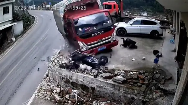 حوادث رکنا: تصویری دلخراش از کامیونی در چین که ترمز بریده و باعث مرگ راکب موتور سیکلت میشود، را ببینید.