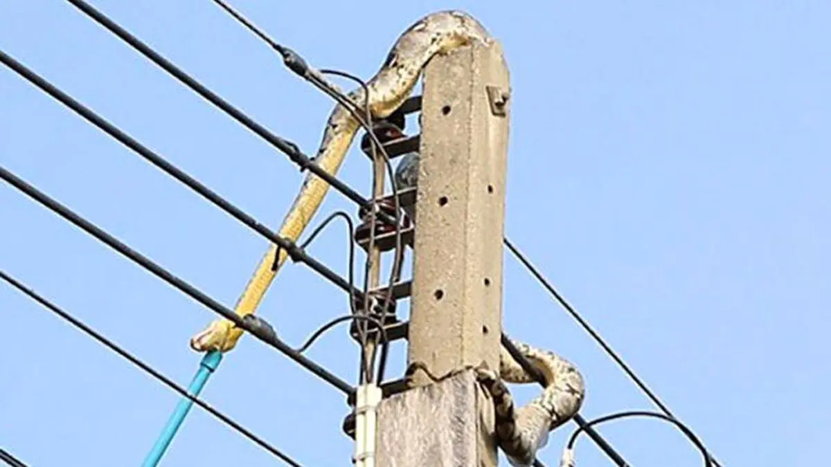 یک مار با رفتن روی کابلهای فشارقوی برق برای شکار کلاغ خیلی ناگهانی با فشار برق پرتاب میشود.