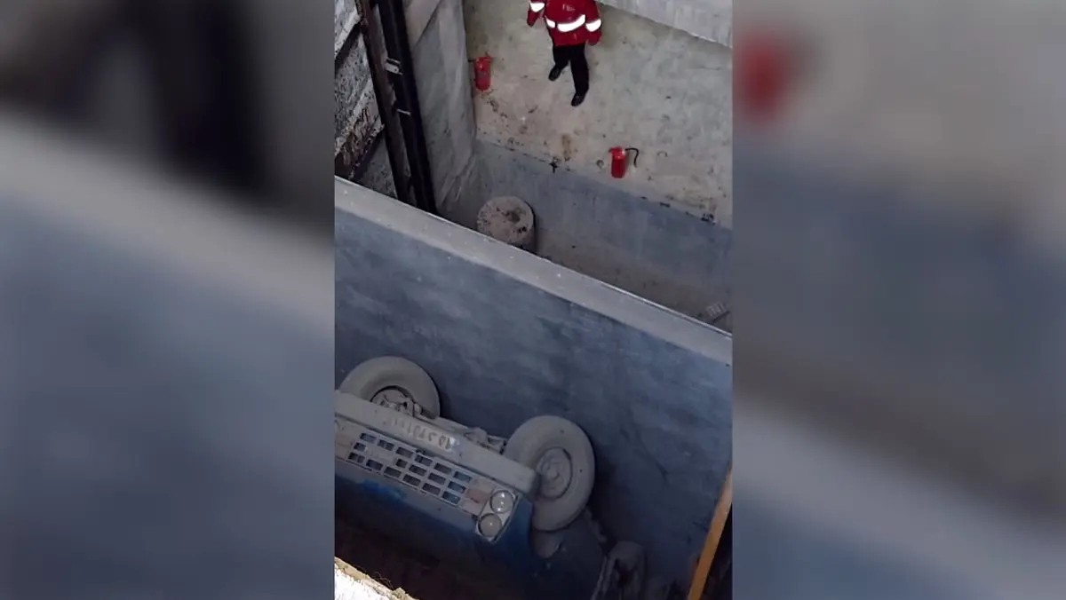 فیلم سقوط مرگبار وانت نیسان در چاه آسانسور + جزییات
