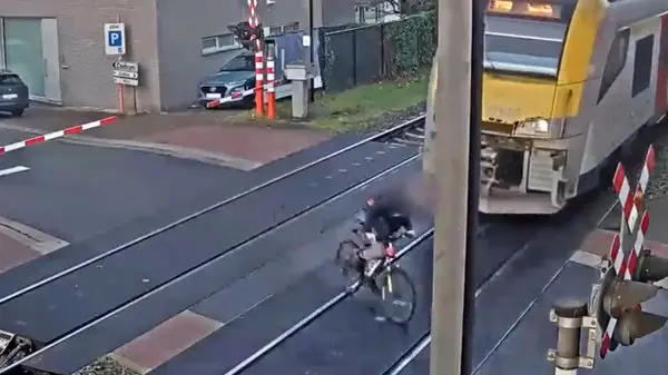 حوادث رکنا: دوچرخه سواری که به علت بی حواسی نزدیک به برخورد با قطار بود، به طرز معجزه آسایی نجات پیدا کرد.