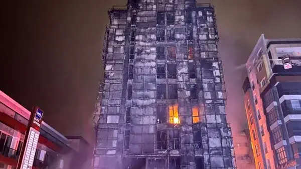فیلم وحشتناک از آتش سوزی ویرانگر برج 10 طبقه با اصابت رعد و برق / در ترکیه همه شوکه شدند