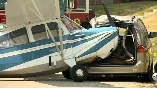حوادث رکنا: در اتفاقی عجیب یک هواپیمای کوچک از باند پرواز خارج شده و با خودرو در حال عبور برخورد کرد.